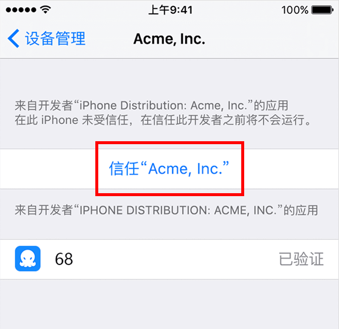 3、點擊「企業級應用」標題下的開發者描述文件名稱,來針對此開發者建立信任。